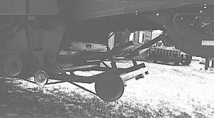 I installed a Massey straw chopper kit on the rear of combine and mounted the chaff spreaders upside down underneath the sieves. Spreaders mount on a frame I made out of 2 by 4-in. tubing. They drive off the re-turn grain cross auger with an 8-in. dia. pulley and V-belt I got at my Massey dealer. I got the correct length belt through trial and error. I use a spring loaded idler sprocket in-stalled in an existing hole in the back of the combine to maintain tension. Cost me about $20 and works like a charm. (Ken Albrecht, Box 136, Prelate, Sask., Canada S0N 2B0; 306 673-2345).