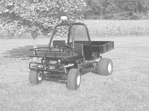 "It's built rugged and simple," says Daugherty. "With the transmission in low gear it'll go right up hills. Top speed is about 15 mph. I built it because in my work with GPS I found that a lot of farmers wanted a low cost utility vehicle to complement the GPS technology they're already using with their farm machinery. Other ATVs don't have as much storage area for soil sample bags and aren't as well designed for mounting a GPS receiver and antenna. Also, most of them sell for $6,000 to $8,000. The Stalker sells for $3,995. Another advantage is that the engine mounts way at the back to prevent interference from GPS radio signals. Radio signal interference can be a problem on utility vehicles equipped with mid-mount engines.