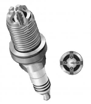 Instead of a single electrode at the end of the plug, the "Platinum + 4" features four electrodes made of a nickel alloy. It's twice as resistant to high temperatures as conventional electrode metals, reducing the potential for erosion and corrosion, the company says. Traditional spark plugs must have a gap that's narrow enough to ensure ignition despite wear or residue build-up. The larger gap on the Bosch plug requires less voltage.