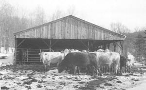 "The bale feeding shed also serves as a shelter for calves born in April and May - they can slip under the gate and into the bale storage area. The open side of the shed faces south so they stay warm. In the summer I remove the rack and clean out the manure and hay," says Dubois.