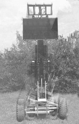 "The Kruger is small enough that it can go through most barn doors and maneuver in tight places, yet it has much greater lifting capacity than conventional skid steer loaders," says Karl-Heinz Zeller, Oroville, Wash. "Several models are available ranging from 38 to 47 hp. The loader can be equipped with a bucket or grapple fork and can be used to load everything from round bales to pallets, etc. The grapple fork mounts on a swivel-type work head. With quick disconnect hydraulics it takes only about two minutes to change the work head. A small backhoe weighing only about 700 lbs. can be mounted on back. The backhoe is supported by a pair of steel legs and folds up to less than the width of the machine."