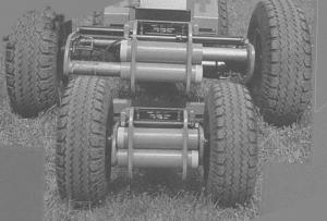Built in Germany, the Kruger Telescoping Loader was exhibited at the recent California Farm Equipment Show near Tulare. The rig's front axle is equipped with a pair of big hydraulic cylinders. The driver simply pushes a button. The axles should be telescoped on-the-go to avoid excessive tire wear; however, you can push the axle to its full spread standing still even under full load.