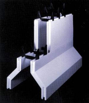 Tech Block is the first insulating concrete form with an offset panel which allows you to pour the footer and wall in one operation. The off-set panel can be turned upside down to form an exterior brick ledge or an interior ledge to set floor joists on. Finishing walls û drywall, paneling, stucco, siding, etc.) can be applied directly to the surface of the forms without furring. Each form is 16 by 48 in., 2 in. thick. They're lightweight, easy to handle and ship flat for low freight rates. They're assembled in pairs on site.