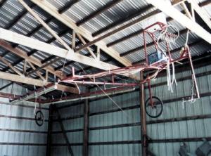 With storage space at a premium on many farms, you might keep in mind that the space in the upper reaches of your machine sheds often goes unused. I was recently in the shed of Farley Cole, Girard, Ill., and noticed his weed wiper hanging from the joists. He just tied a couple ropes to it and hoisted it up. Of course, the idea only works on lighter equipment but Cole says it freed up a lot of floor space and was easy to do.