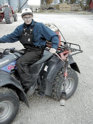 Todd Dennis solved this problem for his neighbor by building an out-rigger arm for the rear of his ATV, to carry the weight of the torch. Then he added a couple of flexible joints so the operator can swing the torch in and out, forward and back.