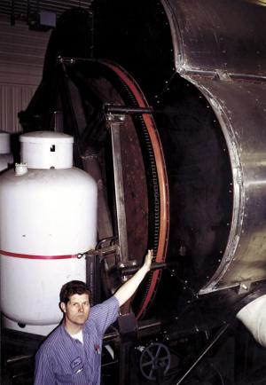 The first working model 12 years ago was a 4 by 4 ft. wooden box filled with wet hay and mounted over a fan blowing hot air from a propane burner. After many revisions, that wooden box has grown into a multi-chambered machine, 45 ft. long by 12 ft. wide and 12 ft. tall.