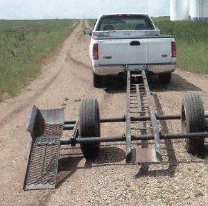 I own a pair of Melroe Spra-Coupe self-propelled sprayers and have farms spread out about 40 miles apart. To reduce time spent on the road, I built a "drive-on" trailer equipped with built-in loading ramps that tip up as you drive on.