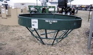 The cone-shaped 9-ft. dia. ring holds the bale at the center of the feeder where it keeps it elevated off the ground. The ring's slanted sides force livestock to reach into the feeder to get the feed. As the animals reach in to eat hay from the insert, any excess or loose hay that would normally be pulled outside the feeder and wasted is dropped inside the feeder between the insert and the outside of the ring. The design allows the animals a second chance to consume the hay, rather than pulling it from the feeder and tromping it into the ground.