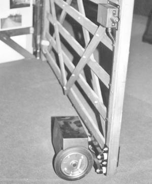 A 75-watt solar panel charges a battery mounted inside a box attached to the wheel. The battery operates an electric motor, which drives the wheel. A remote control is used to open and close the gate.