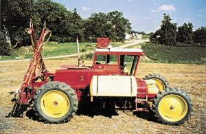 I converted an old Massey 750 combine into a low-cost, self-propelled sprayer equipped with rear wheel drive and front axle steering. The machine drives and steers off the front axle, just like a tractor, so it turns sharp and is easy to maneuver. It has a 60-ft. boom and a pair of 300-gal. tanks and rides on 18.4 by 38 wheels. Its low center of gravity helps keep it stable on sidehills.
