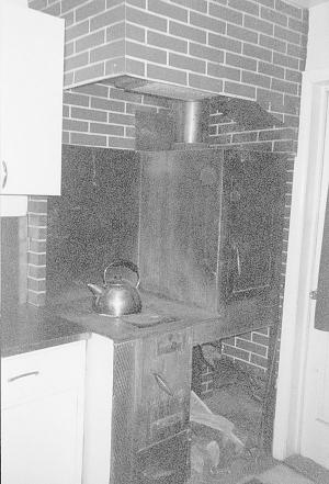 The top of the firebox serves as the stove-top cooking surface. Hot air runs from under the stove top to the oven, positioned above and to the right. Air flows up and around the oven to a plenum. From there the air is ducted to each room in the house. "Usually with wood stoves, the heat stays around the stove but with my design it travels to all parts of the house, and the cool air goes back up around the stove," says Finch.