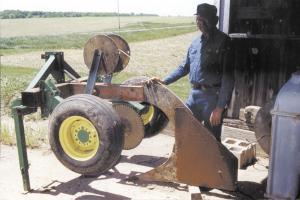 "It works great," says Litchfield. "I use my Ford 960 50 hp tractor to pull it. One time I used it to lay 800 ft. of electrical cable when I put in some pole yard lights. I didn't want to use a trencher because it throws dirt out to the side, which makes a mess. Also, after the wire is in you have to backfill the trench. My machine does it all in one pass."