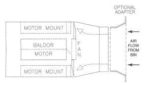 The vacuum aeration fan simply mounts in place of existing fans with no need for modification of the bin. Adaptor rings are available, if needed, to match up to larger size openings.