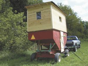An Illinois farmer and his wife have the answer to drafty, cold hunting blinds. They tow their converted gravity box, nicknamed the SniperWagon, to the field a few weeks before hunting season. On opening day, they climb into the heated and paneled hunting room and wait for the right deer to walk by.