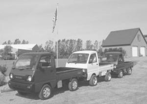 (Sells used Daihatsu, Mitsubishi, and Subaru mini trucks with 2 or 4-WD. Some dump boxes available and a model with tracks.)