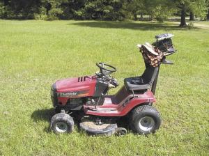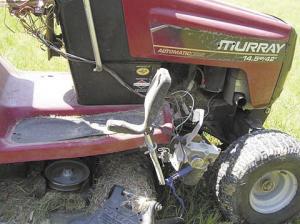 A friend calls his latest mower "Robogoat". He started with a cheap Murray lawn mower with a 42-in. cut and 14 hp engine that cost about $1,100.