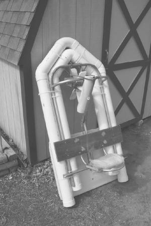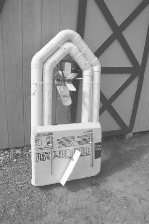 "My grandchildren play with it in a shallow irrigation ditch in our back yard, and also on a nearby pond. They and their friends have a lot of fun with it," says Lanser. "I spent less than $100 to build it. I paid $30 for the pvc pipe and fittings, $10 for the conduit, and $15 for the paddles and brass bushings.