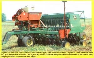 "Once I saw this drill work, I knew it could plant anything but I needed a delivery system for corn since the fluted rollers on the drill couldn't handle it. A Deere engineer told me I couldn't do it but Deere doesn't have any interest in a planter like this. They want to sell as much equipment as they can because they have a tremendous investment in the manufacture of both planters and drills," says Beckman.