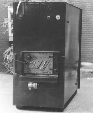 The high temperature burn is achieved by a forced draft. An insulated water jacket surrounds the firebox, flues, smoke collector and heat exchange chamber. Multiple flues carry the heat from the firebox to the smoke collector and heat exchange chamber.