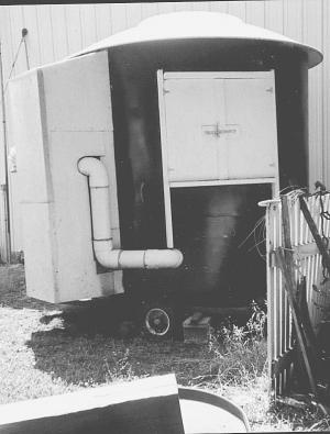 "I built it because I didn't have space in my shop for a sandblaster," says Hanen. "I got the satellite dish from someone for free.