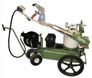 Green Steam kills weeds with 660-degree Fahrenheit steam. The self-contained unit mounts on a wheeled cart that holds the 56-in. stainless steel steam thrower gun, a 7-gal. water tank, a 20-lb. propane bottle and a deep cycle battery. The battery operates a 100-PSI water pump and the propane heats the water that runs through coils and comes out as steam when the trigger is pulled.