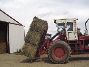 He uses brokers to sell locally-grown hay, most of which goes to Wisconsin. He uses local truckers to haul the hay, which he has weighed at a local elevator to make sure the trucks are loaded with the maximum legal tonnage. He uses the loader to load bales onto the semi trailer. Then he drives the semi trailer to the elevator, towing the loader behind, and uses the loader to adjust the weight of the load, taking a bale or two off as needed. "Without the loader, I'd have to bring the semi trailer all the way back to my farm to adjust the weight," says Crick.