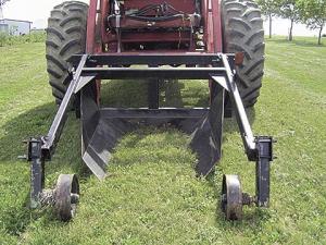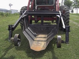 The loader is also handy around his farm because he can tow it out to the field and use it to load hay without the need for another operator. "The hitch acts as a counterweight to the loader on front. It's like a big bumper on back so if I accidentally back into something it won't damage the loader."