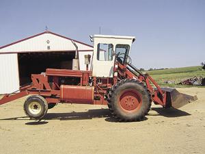 "I used the Versatile loader because it fits close up against the cab so I have a great view of everything right in front of me. I bought the loader cheap at an auction sale."