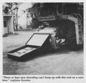 The unique "Quick Tatch Corn Conveyor" lets you use your self-propelled combine to shell ear corn. FARM SHOW first reported on the conveyor, invented by Bernard Kersten, Roberts, Wis., in Vol. 6, No. 1, 1982.