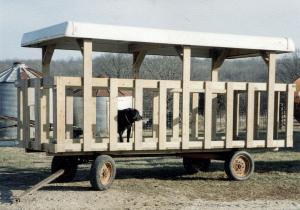 "I built the feeder shown in the picture on top of an old Case wagon running gear. A pop-up camper top, which was being junked, was used for a roof. All lumber used to make the sides and posts on the feeder were treated 2 by 6-in. boards.