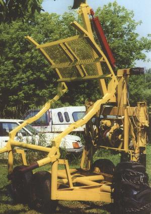 What makes the tandem-axle log hauler different is that the hydraulic-operated boom mounts on one side instead of on front. The boom swings nearly 270 degrees, allowing logs to be dragged in from as far away as 100 ft. from both sides and back of the machine. The boom is raised and lowered by a 32-in. long, 3-in. dia. hydraulic cylinder, allowing Holt to raise the log and swing it over onto the rack.