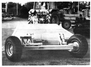 A single hydraulic cylinder controls a tie rod on the back axle of the trailer, which is designed to drop flat to the ground. Flow of fluid to the steering cylinder is controlled by a mechanically-activated sensor on the drawbar that turns the trailer's rear axle as the tractor turns, allowing much sharper turns in the field. The new-style steering axle could be fitted to other lengthy equipment.