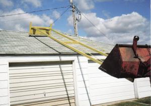 “I came up with the idea because I’m 78 years old and I got tired of pulling snow off with an aluminum rake. A blacksmith friend of mine built it at a cost of $650,” says Hemp. “I use it on three different tractors which are all equipped with Duall loaders with 7-ft. wide buckets. I also use it on my Deere skid loader, but it’s an older model and doesn’t raise as high as I’d like. I think it would work perfect on high lift telehandler loaders that go up to 40 ft. high. If I made another one I’d make it lighter, with less bracing.”