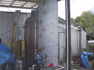 He first built a 40-gal. system that he says cost him less than $200. Now he has a 400-gal. processor with larger tanks, more elaborate piping and valves, better pumps and larger storage. He has about $4,000 into the larger system and produces very high quality biodiesel for less than $.80 a gallon. Both systems are free standing with excellent ventilation. They’re non-pressurized and the liquid never gets hotter than 130 degrees. Chemicals and methanol are added only after the heater is turned off.