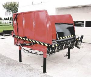 “We mounted the sickle on hydraulic arms so it can move down the face of a bale by its own weight, or an operator can regulate the speed of the cut,” says Blank. “When it’s done with one cut, we raise it up so the platform apron chain can move the bale backand start another slice down.”
