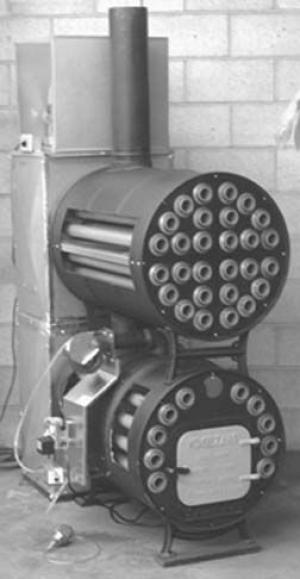 Here is what makes it work so well: 1) A fuel pump with speed control allows full control of the amount of fuel going into the combustion chamber. 2) There is no nozzle to plug, a common problem with other waste oil heaters. 3) A combustion air blower with air control allows matching the fuel with the right amount of air. 4) A cast iron combustion chamber creates an intense heat area to thoroughly vaporize the fuel for complete combustion. 5) The cascade assembly located in the bottom of the combustion chamber helps to break up the fuel for more complete burning. 6) The heaters are packed with steel heat exchanger tubes, extracting the maximum heat and protecting the barrels from burning out, giving them a very long life. 7) An air plenum and powerful blower will fill your shop with heat, not only the area right next to it.