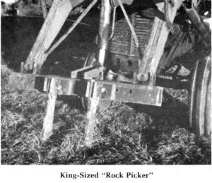 The rock picker has two replaceable teeth about 18 in. long that could be made longer for bigger tractors. The teeth are carbon-tipped for extra strength.