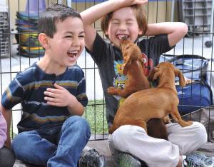 The fact that even the adults of some of these breeds are small helps. Stewart points to a 5 to 6-year old Daschshund that acts like a puppy and is popular at parties. By far the most popular, though, are the 2 to 7-month old puppies.