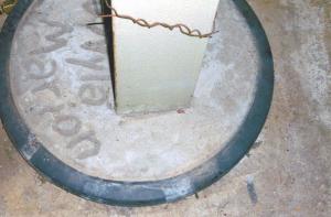 He first dug four 6-ft. deep, 18-in. dia. holes, 2 on each side of the floor for 2 vertical 8-in. support beams. He inserted a heavy duty, 18-in. dia. ribbed poly culvert into each hole and poured 2 ft. of concrete into the bottom to hold the culvert in place. Then he poured the concrete floor and let it dry. He also covered the opening at the top of each culvert with a 1/4-in. thick steel plate set flush to the floor, and it remained covered during the wedding reception.