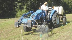 “By raising and lowering the tractor boom I can control the width of the area to be watered. Now instead of filling buckets and carrying water to each tree I sit on the tractor and drive along the rows while the tractor does the work for me,” Lehman says.