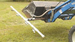Lehman recognized a labor and time-saving opportunity when his neighbor wanted $125 for his field sprayer, complete with a power takeoff pump. Lehman bought it and removed the field spray booms, feed hose, pressure gauge and regulator. He kept the in-line filter and hose to the pump and added valves and hose barbs to the pump output to turn each outlet on and off. He made the watering wand out of 2-in. pvc pipe, lined with inexpensive showerheads. The pipe mounts on the side of his tractor’s loader and is connected to the pump with a 1-in. ID flexible hose.