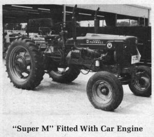 The desire for an older tractor that could move faster for spraying, and when going from field to field, prompted Keith Peterson, Moorland, Iowa, to install a 302 engine and C-4 transmission from a 1974 Ford Maverick into an International "Super M" tractor. Peterson says his modified tractor, used primarily for crop spraying, has a top speed of 50 mph.