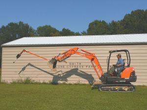 He admits the dealership where he bought the backhoe was surprised by his request to come up with a bracket to mount the Limbinator on the new KX71 Kubota rubber-tracked excavator Smith ordered.