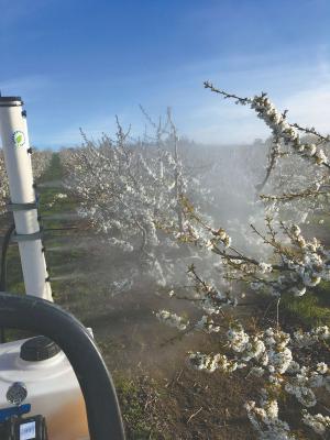 “We are still trying to refine the system, but results have been promising,” says Whiting. “Our impact depends on the variety and on the amount of natural pollination. This year we had great conditions for bee activity so our system only increased fruit set by an average of 15 percent.”