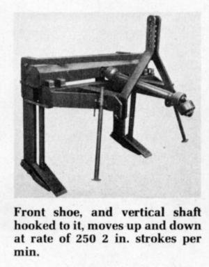 On the double , blade unit, the shanks are 60 in. apart, with the pto shaft and gear box located in the center. On the single blade unit, the pto drive and gear box are set off to one side. "This poses more wear on the pto shaft since it runs on an angle rather than straight back from the tractor," explains Greisbach. "However, the same gear box and pto shaft used with the twin blade unit are used on the single blade model. Thus, the shaft and gear box are overbuilt to compensate for the skewed alignment," he explains.