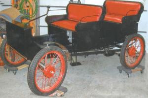 Home-Built Horseless Carriage FARM HOME Cars My friend John Scanson brings FARM SHOW to the coffee shop in our garage where a bunch of guys come over at 9:00 a m and 3:00 p m 6 days a week They thought I should send you a photo of a “horseless carriage” I built The body was built from rectangular tubing plywood and upholstery It’s powered by a lawnmower motor and transaxle fitted with motorcycle wheels It’s steered by a single control lever up front It looks like an antique and runs great Roger L Westby New Rockford N Dak