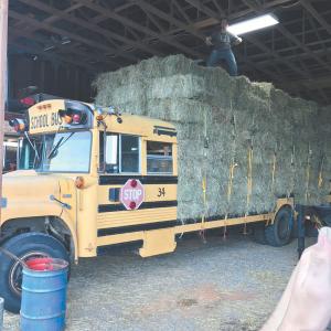 Hay-Hauling Flatbed Schoolbus