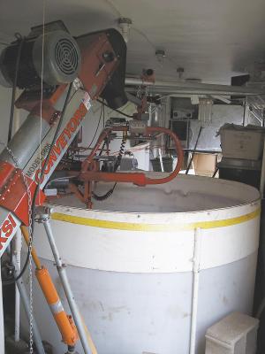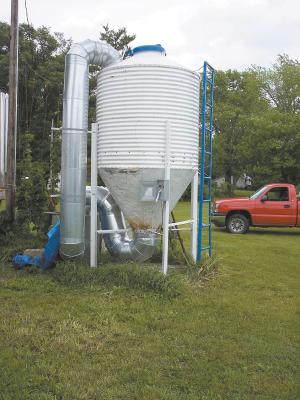 For the kiln, Stiegman installed a false, flat perforated floor in a bulk feed tank and connected it to a propane-fired house furnace.