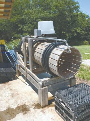 Rotating Washer Makes Cleaning Vegetables Easy CLEANING EQUIPMENT Washing multiple pounds of carrots and other root vegetables at a time for his CSA program and farmers market booth was a tedious chore for Curtis Millsap at Millsap Farm in Springfield Mo To speed up the process he asked his neighbor Avery Broyles to build him an automatic root washer Curtis provided Avery with a photo of a root washer he found online to use as a model Parts used include pine board strips 24-in drainage culvert pipe 1/4-in bolts with lock nuts galvanized pipe pvc pipe a 1/8-hp motor off an old treadmill castors an on/off switch and a serpentine belt from an ’02 Impala The pine boards make up the drum of the root washer as well as the ramp that the root vegetables roll down into the drum There are 3 sections of the drainage culvert fastened around the outer edges of the drum with castors attached to the wood stand that fit into the grooves of the drainage culvert They allow the drum to rotate via the serpentine belt attached to the treadmill motor A hose is attached to the galvanized pipe which runs into pvc pipe installed on the interior of the drum and allows water to spray down into the drum as it rotates to wash the vegetables The spray can be adjusted by a union on the pvc pipe The root washer unit plugs into a 110-volt outlet The root washer can hold up to 40 lbs of carrots at a time Curtis says and he figures it saves 2 man hours every wash Contact: FARM SHOW Followup Millsap Farm 6593 Emu Lane Springfield Mo 65803