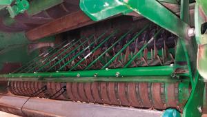 “Our compression rack comes with a long bar made of solid steel tubing instead of a hollow plastic pipe, and is 8 in. dia. instead of 4,” says Kellen. “Also, it has 10 compressor rods instead of 6. The extra weight and the additional compressor rods press the crop material down into the baler teeth for more aggressive feeding of light material.”